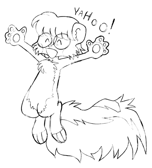 A drawing of Flapjack, happy because something good happened!